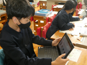 6年生は、歴史を学んでいます。「桶狭間の戦い」が行われた場所を地図で調べ、当時の地形や勢力図からどんな戦であったかを調べました。