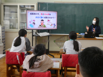 昼活動「ハッピー健康の日」骨と筋肉の働きや成長に必要な要素について学びました。本校では、養護教諭を中心に繰り返し指導をしていますが、改めて「食事・睡眠・運動」の大切さを実感しました。