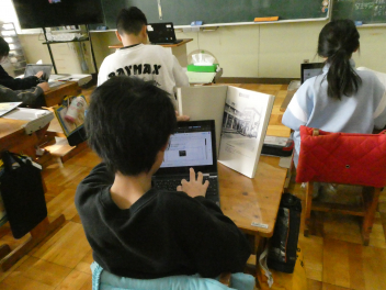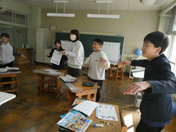 5年生は、理科、振り子の学習。今まで学習した内容を確認し、体育館で実験方法を工夫してまとめをしました。理科室よりもダイナミックに振り子の長さや角度、重さを変えた実験ができました。