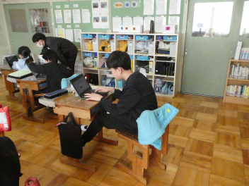 午後には、第2回地域ボランティアの活動が行われました。前回の郷土資料室整備に続き、今回は図書室の清掃と図書の整理を行いました。学校支援コーディネーターの説明を受け、7名の地域の方々がふだん清掃できない窓や渡り廊下をきれいにしてくださいました。また、図書の入れ替えに伴う作業を手際よく行ってくださいました。本当にありがとうございました。