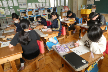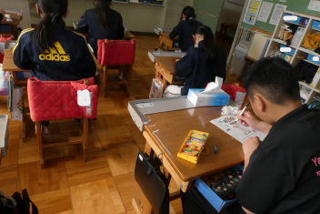 6年生は、2年間のまとめとして、地域の人への感謝の気持ちを伝えるプロジェクトの一環として、布を使ったプレゼントを作りました。