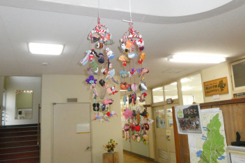 立春が過ぎ、今年も横山小の玄関ホールには「つるしびな」が飾られました。たつっ子の健やかな成長を願って作られたつるし飾り。
