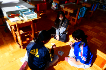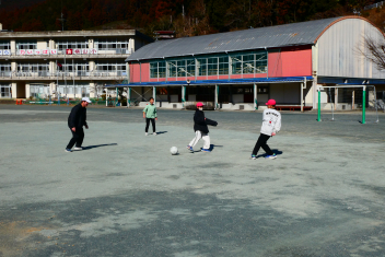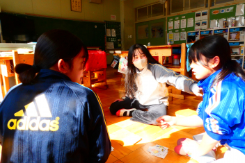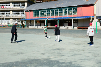 昼休み、整備されたグランドでサッカー遊びを楽しむ子供たちの姿がありました。教室では、カードゲーム。卒業まであと24日。思い思いに昼休みを楽しみました。