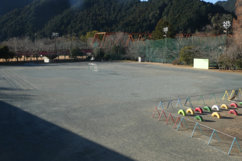 週末に地元の業者の方に、運動場を整備していただきました。風や経年変化によりグランドの土が飛ばされ、埋まっていた石が表面に出ていたため、土を入れて整地をしていただきました。