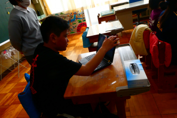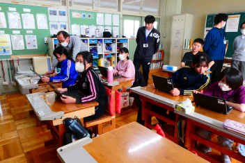 6時間目には、リモートで行われたクラブ活動「スクラッチ教室」も参観しました。自力でプログラミングに挑戦したり、友達と教え合ったりする横山小の良さを知ってもらう機会となりました。