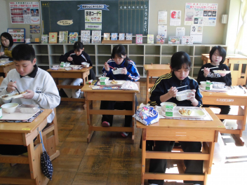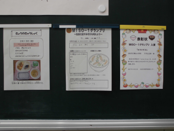 今日の給食は「MISOー1グランプリ入賞 横山小『yokoyama~横小4人のみそ汁~』」でした。おいしくいただきました。