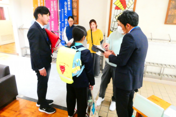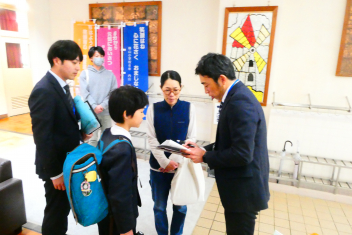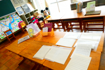 5年生から6年生へお礼の気持ちを込めたプレゼントを贈りました。プレゼントの色紙には、先日の思い出遠足の写真とメッセージが載せられていました。1・2年生のときに撮った写真とほぼ同じ場面で撮った思い出遠足のときの写真を見比べ、歓声があがっていました。