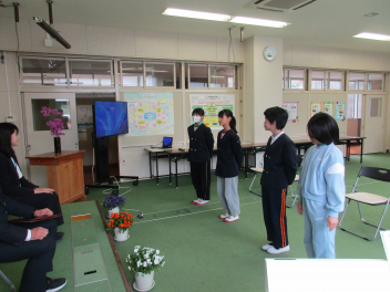 6年生が卒業プロジェクトの一環でかいた「卒業記念壁画」の序幕式を行いました。壁画の披露とともに6年生から絵に込めた思いや来年度の横山小学校を託す5年生への願いを伝えられました。