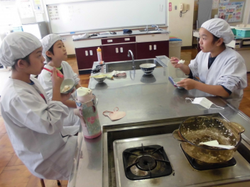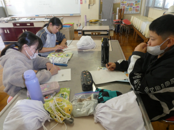6年生は、朝食の献立を立てました。栄養や彩り、食べやすさなどを根拠に、献立カードを活用して学習を進めました。自分が立てた献立を友達に説明し、その献立の良さやよりよい献立にするためのアイデアを出し合いました。