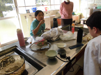 炊き上がった米を食べ、「いつも食べている米より甘くて、おいしい!」と言っている子もいました。