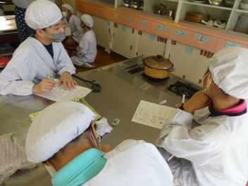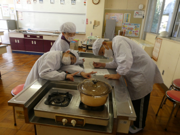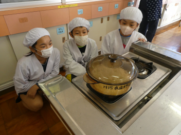 ガラス鍋を使って米が炊き上がる様子を観察しました。火加減に注意して、鍋の中で米が動く様子や沸騰する様子を注意深く観察しました。