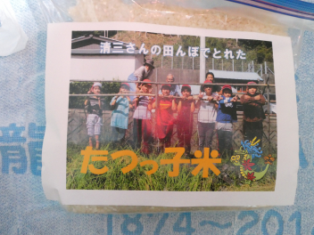 今日のお米は、先日「稲刈り」体験をさせていただいた鈴木さんからいただいたものです。今年は、バケツで稲を育て、学校で稲刈りや脱穀の体験をし、毎年、米作りの体験をさせてくださる鈴木さんへの感謝の気持ちを、いつも以上に感じている子供たちです。