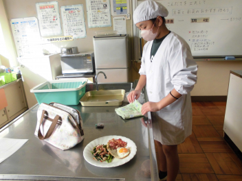 6年生家庭科「こんだてを工夫して」栄養のバランスや彩りを考えて、主菜と副菜を作りました。用具や食材の準備から、調理、片付けまですべての工程を一人で行いました。自分の好みを入れながら、工夫された献立、手際のよい作業はさすが6年生です。「家でもやってみる!」「休みの日に作ってみようかな…」という声が聞かれました。