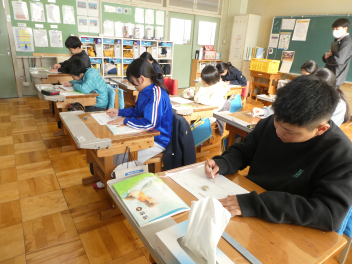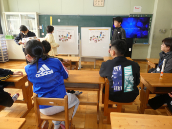 今日の総合的な学習の時間では、2月20日(金)の参観会「学習の成果の発表」の準備をしました。地域の歴史や自然、祭りなど個々の課題に対して、調査活動をしてきたことをまとめ、友達や参観会に来てくださる方々に分かりやすく伝えるための工夫をしています。プレゼンテーションの資料や音、クイズや劇などを組み合わせて、よりよい表現となるように意見を出し合っていました。