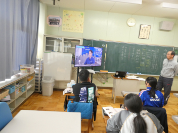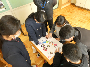 昼休みに「健康はつらつ委員会」による学校給食イベントが開かれました。事前にとったアンケート結果を発表した「給食何でもランキング」。「旬の野菜を当てようクイズ」「ご当地お雑煮クイズ」では、個人戦やグループ対抗を取り入れ、楽しく「食文化」を学ぶことができました。