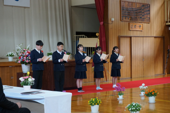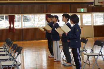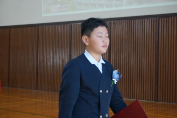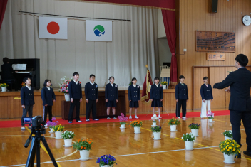 •  朝の冷え込みが和らぎ、会場の体育館にやわらかな春の日差しが入る中、横山小学校卒業証書授与式が挙行されました。1年間、横山小学校のリーダーとして、その名にふさわしい活躍をした卒業生の旅立ちです。5年間をともに過ごした5年生はもちろんのこと、職員も、どこかに寂しさを感じつつ、旅立ちを心から祝いました。来賓の皆様、メッセージを送ってくださった方々からのお祝いと中学校へのエールを胸に、大きく羽ばたいていってくれると思います。御卒業、おめでとうございます。