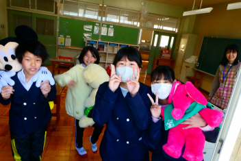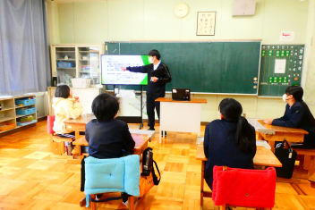 5年生から6年生へお礼の気持ちを込めたプレゼントを贈りました。プレゼントの色紙には、先日の思い出遠足の写真とメッセージが載せられていました。1・2年生のときに撮った写真とほぼ同じ場面で撮った思い出遠足のときの写真を見比べ、歓声があがっていました。