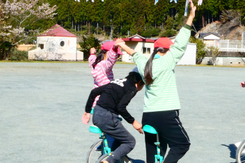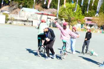 今年度最後の体育の時間。5・6年生で行う最後の一輪車の練習でした。4月25日の運動会で披露するときには、6年生と中学1年生。少し期間が空いてしまうため、成功のイメージをもって今日の練習を終わらせたいという思いから、繰り返し練習をしていました。
