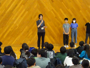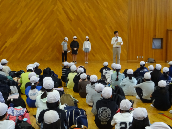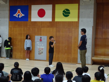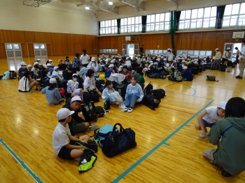 まず、体育館にて入所式を行い、代表の児童が臨海学校の意気込みを伝えたり、三ケ日青年の家の決まりなどを教えていただりしました
