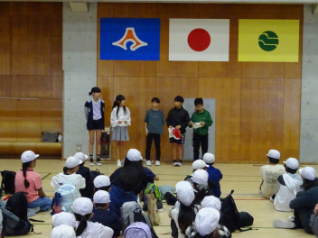退所式では、代表の児童が、臨海学校で学んだこと、成長したことをしっかりと発表することができました