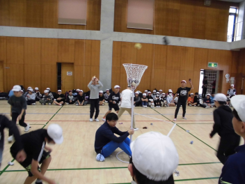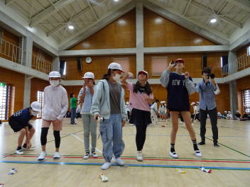 1日目午前中の活動は『まるたアクティブ』の予定でしたが、天候の関係により体育館でできる『くつしたまいれ』に変更