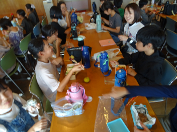 臨海学校最後のご飯を、みんなで思い出を振り返りながら食べました