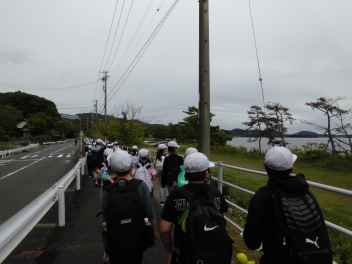 三ケ日青年の家から神社までは、全員で三ケ日の自然を見ながら移動しました