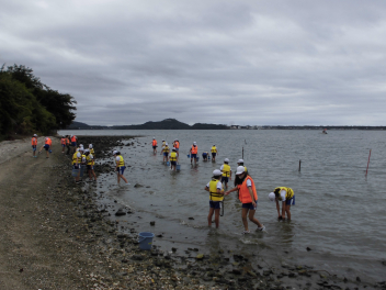 湖岸観察では、普段なかなか見るのことのできないカニなどの海の生き物を見つけたり、綺麗な色の貝殻を見つけたりすることができました
