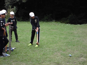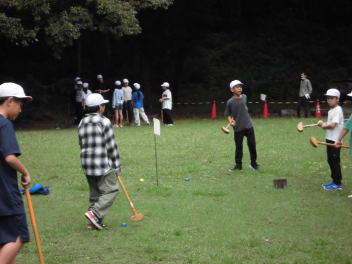 マレットゴルフは、初めてゴルフクラブを持った子も多く、なかなか真っ直ぐにボールが転がらなかったり、思ったよりもボールが転がらなかったりして、悪戦苦闘しながらもカップまで一生懸命に考えてボールを打っていました