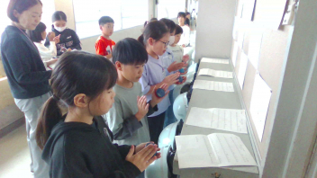 学校の先生たちや6年生のみんなが見送りをしてくれました