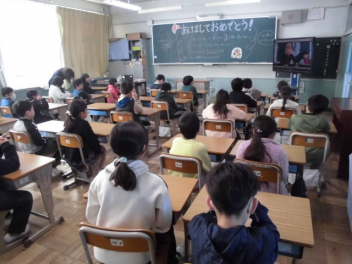 今日は、2年生の他のクラスの友達や、8の字とびのコツを教えてもらった3ー4のお兄さんお姉さんを招待して楽しんでもらいました