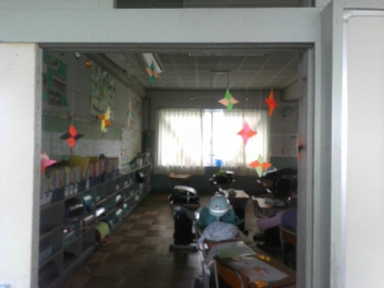 • 3年生の教室の入口が、手裏剣で飾り付けされてました