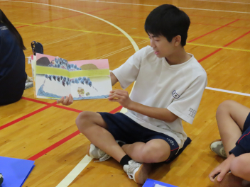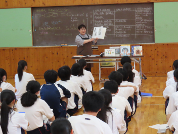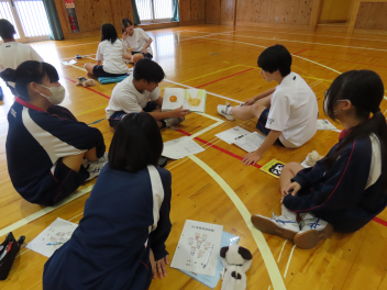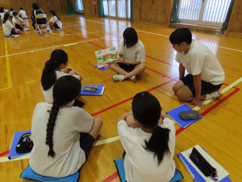 •  10月に予定されている、3年生の「保育体験」に向けた事前学習、「おでかけ絵本講座(中央図書館)」が行われました。小さな子どもたちと接する時や絵本を読み聞かせる時に配慮したいこと等を教えていただき、グループで実践しました。