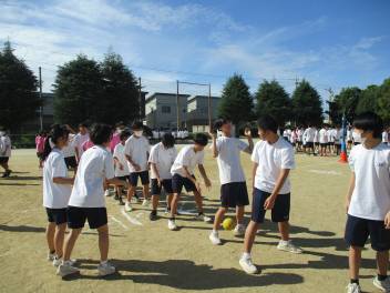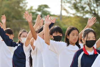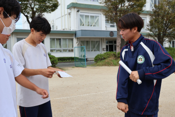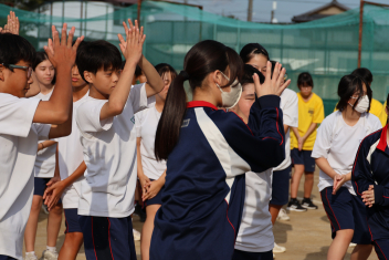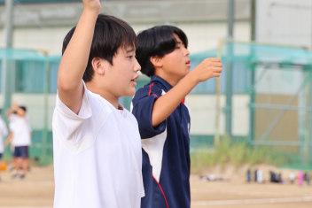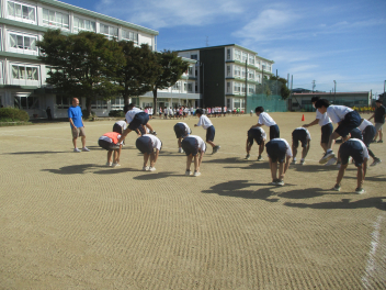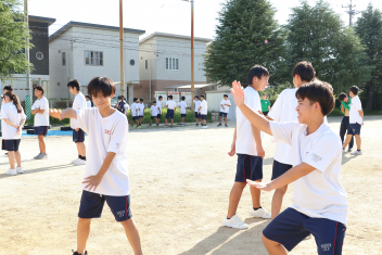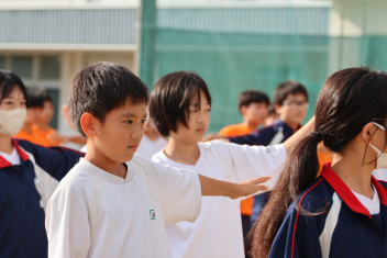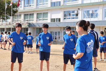 体育大会の総練習がありました。開閉会式や応援パフォーマンスの最終確認が行われ、縦割り種目の練習では、学年の枠を超えて、アドバイスを送りあったり、作戦会議をしたりして、仲を深めていました。