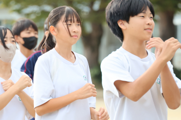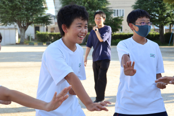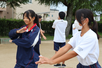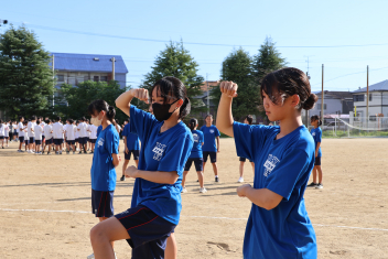 •  体育大会に向けた「応援パフォーマンス」の練習が始まりました。3年生が各団のテーマに合ったパフォーマンスを考えて、準備をしてきた内容を、1・2年生に伝えました。楽しそうに笑顔で活き活きと活動する様子が印象的で、体育大会当日が今から楽しみになりました。