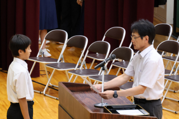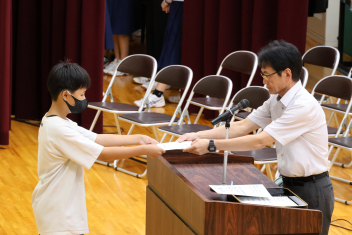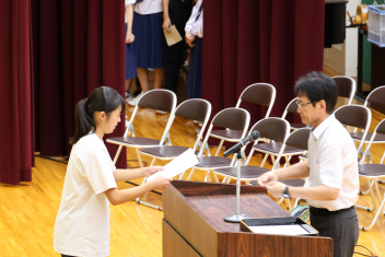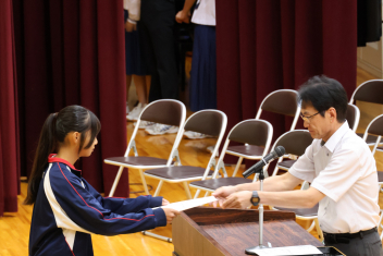 表彰式では、夏休みに様々な場所で活躍した生徒の紹介をしました。