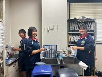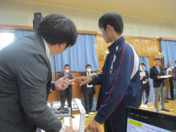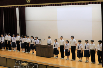 •  後期の組織が決まりました。3年生から2年生に生徒会が引き継がれ、学校に新しい風が吹きます。「与進同体~つながる思い 広がる思い~」をスローガンに掲げ、各委員会や各学年と協力して笑顔が溢れる学校づくりを目指します。