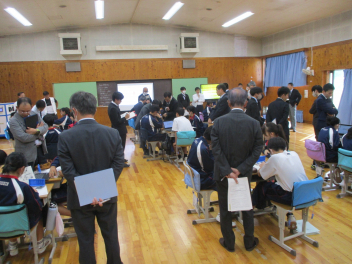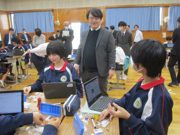 •  浜松市の代表として、2-7の技術の授業が公開されました。多くの学校の先生方がお越しになり、友達と協力しながら課題に取り組む姿や、自分で決めたテーマに主体的に取り組む姿、友達が完成させた電気回路の良さを感じる姿など、与進中学生の素敵な姿を見ていただくことができました。