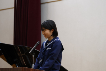 2年生の代表生徒は、「理想を理想のままにしない」「自覚と責任を持って、自分の意志で行動にうつす」「努力の過程を大切にしたい」と発表しました。