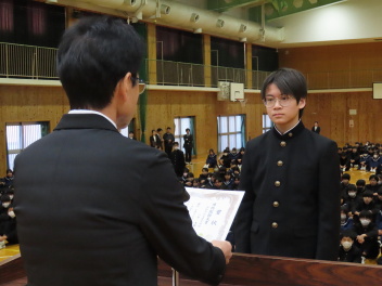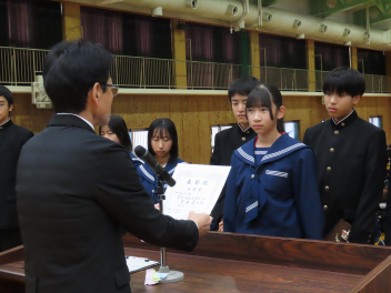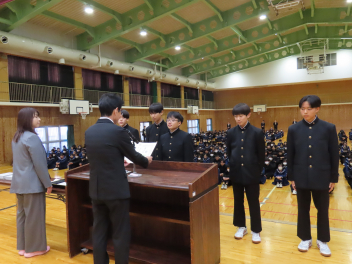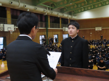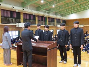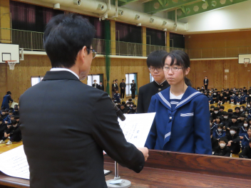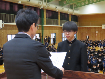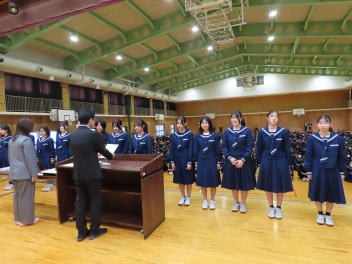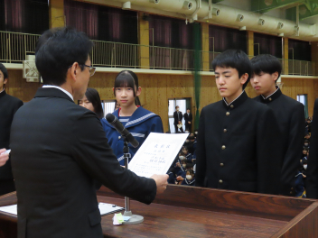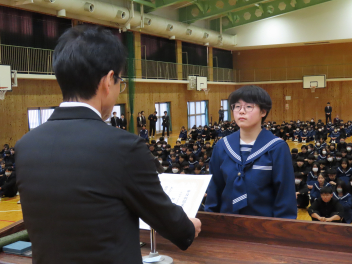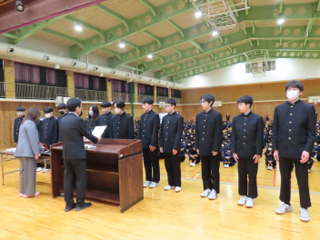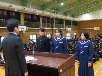 1年生の代表生徒は、「挑戦であふれる3学期にしたい」「挑戦は考える力を向上させ、新しい発見がある」「学級委員として新しい企画でよりよいクラスをつくりたい」と発表しました。