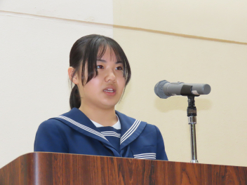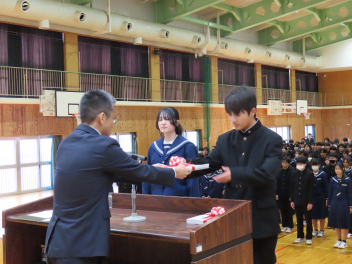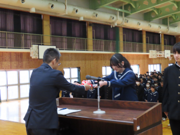 1年生は「学級委員として責任を持つことの大切さ」2年生は「先輩方から学んだことを生かし、自分たちが最上級生になる自覚を持つこと」について述べ、立派に1年を締めくくることができました。