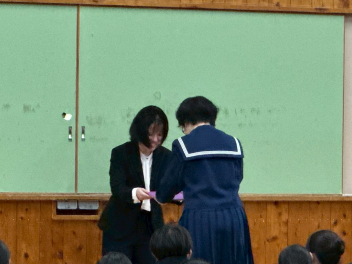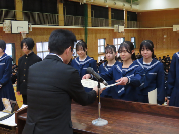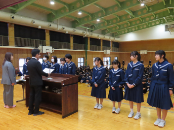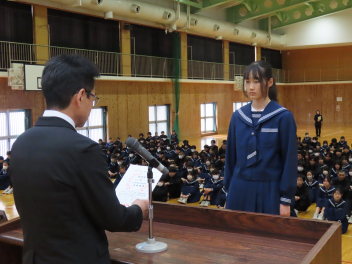 1年生は「学級委員として責任を持つことの大切さ」2年生は「先輩方から学んだことを生かし、自分たちが最上級生になる自覚を持つこと」について述べ、立派に1年を締めくくることができました。