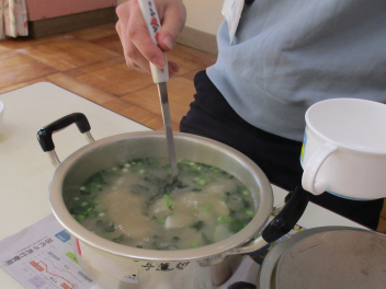 職員室の先生にお味噌汁をつくって