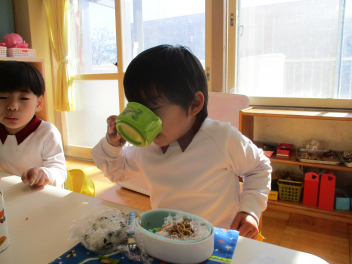 最後はみんなで『♪園歌』と『♪おしょうがつ』を歌いました