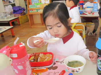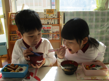 発表会の総練習で頑張った体に、お味噌汁が染み渡りましたみんなで温かいものを食べると、なんだか心もホッとするねcheeky