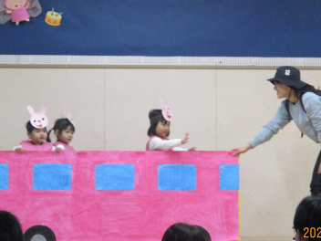 日頃部屋で楽しんでいる遊びを披露しながら、体全体を使って表現することを楽しんだ年少さんでしたwink