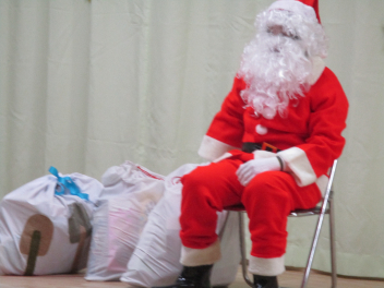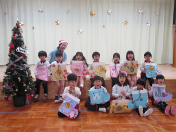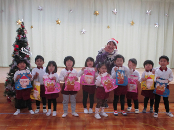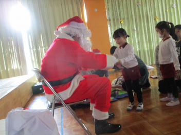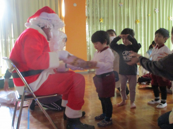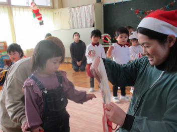 一人ずつに、サンタさんがプレゼントを手渡してくれましたfrown
