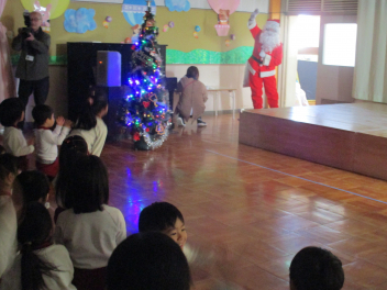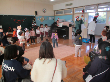 みんなで『♪あわてんぼうのサンタクロース』を歌ったり『♪ジングルベル』を踊ったりして、遊戯室が楽しい雰囲気で満たされました