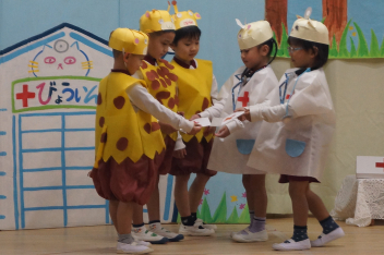年長さんになると、ストーリーをしっかり理解し、役に合わせて演じたり、友達と気持ちを合わせたりしながらお話の世界を楽しむようになりますlaugh