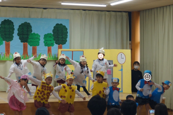 大好きな動物になりきって、自分なりに表現することを十分に楽しんだ年中さんでしたfrown日程変更がありましたが、ご参観いただきありがとうございましたlaugh